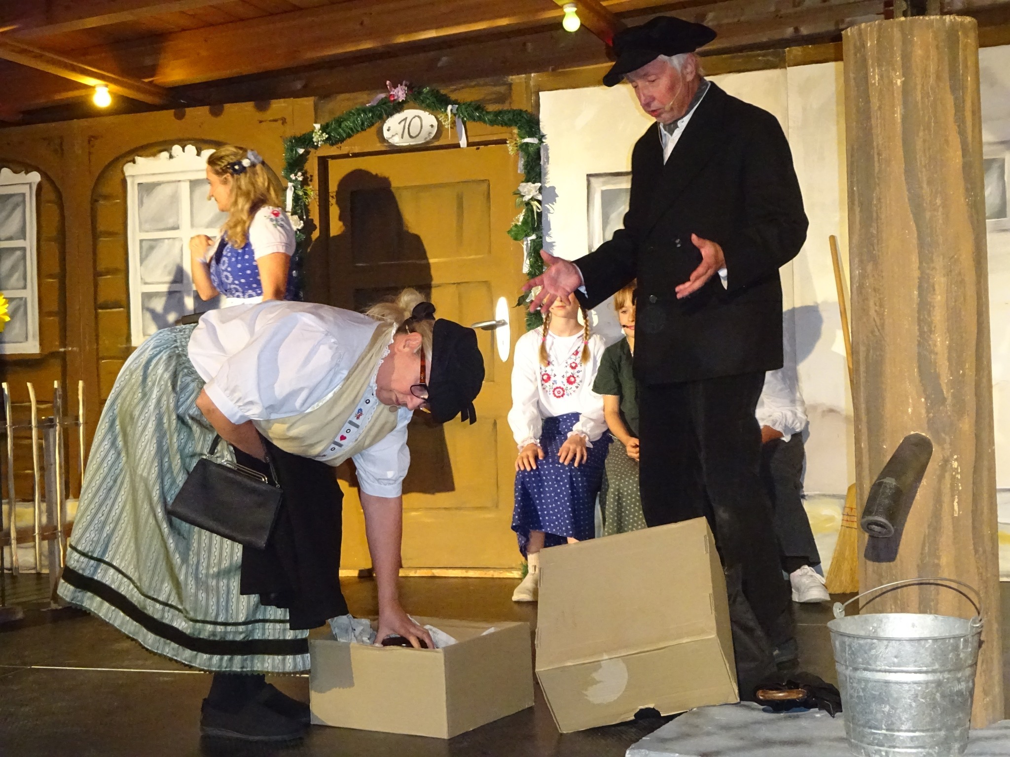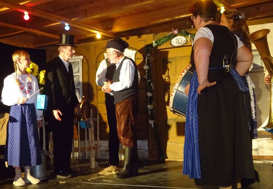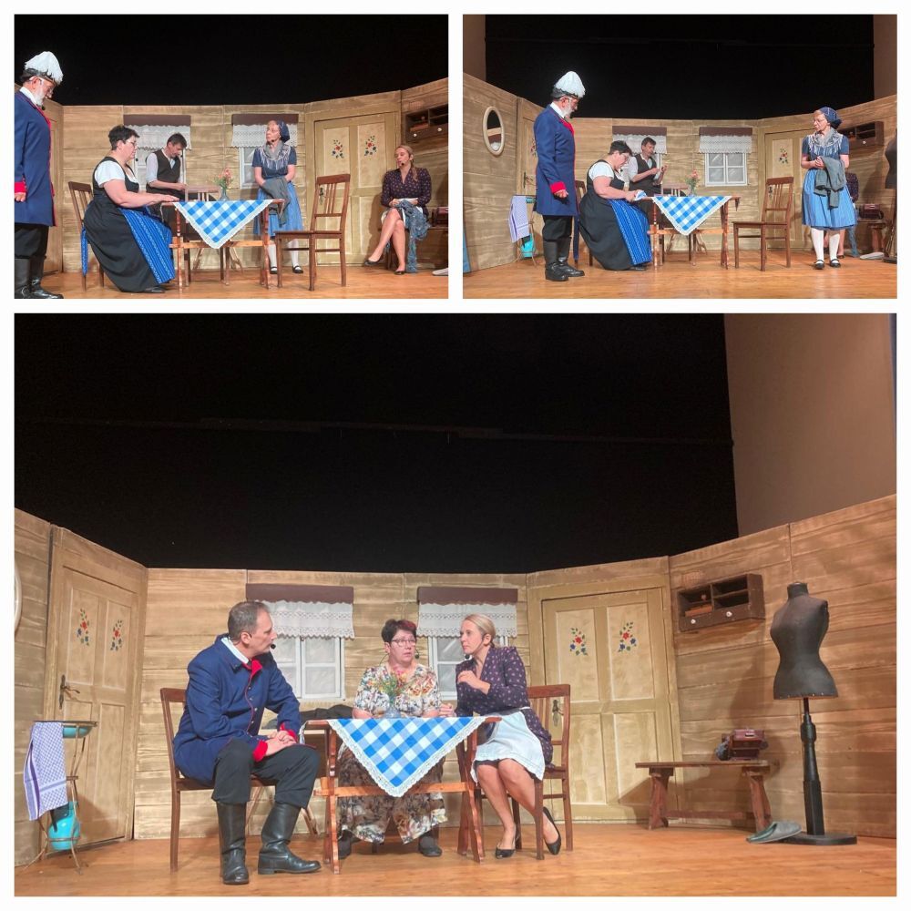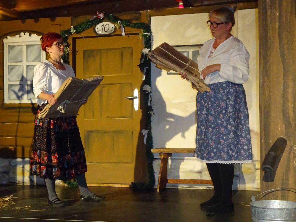 Im Vorfeld geriet unsere Zuversicht jedoch ins Schwanken, denn zwei Schauspielerinnen wurden krank, sodass wesentliche Rollen durch sie nicht besetzt werden konnten. Aber kurzfristig erklärten sich andere Mitspielerinnen bereit, diese Rollen noch zu übernehmen. Teils in Doppelrolle und mit zusätzlich zeitnahem Rollenlernen konnten die Lücken so neu besetzt werden. Danke dafür.