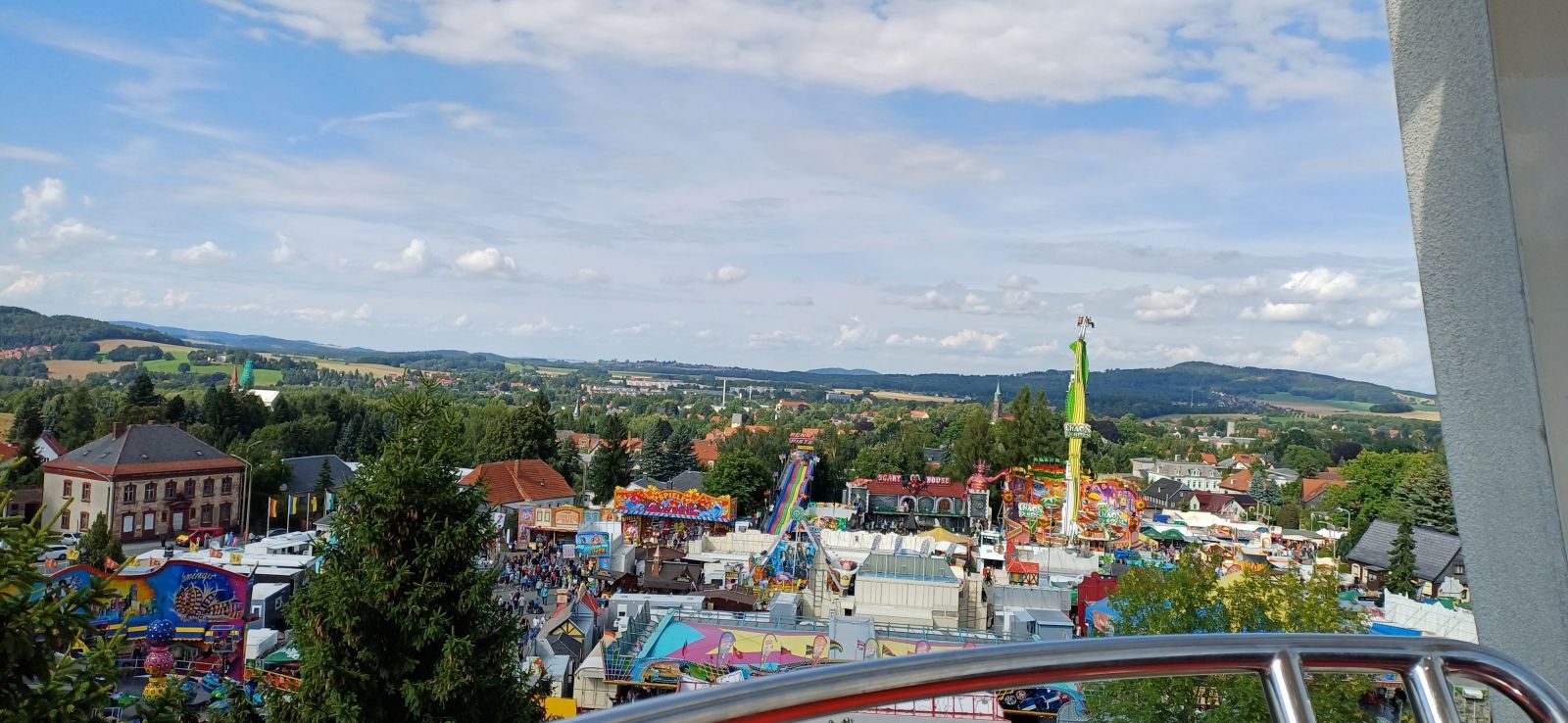 Ganz besonders lohnt sich eine Fahrt mit dem Riesenrad. Es wird den Mitfahrern eine gigantische Aussicht über das weite Bergland geboten.