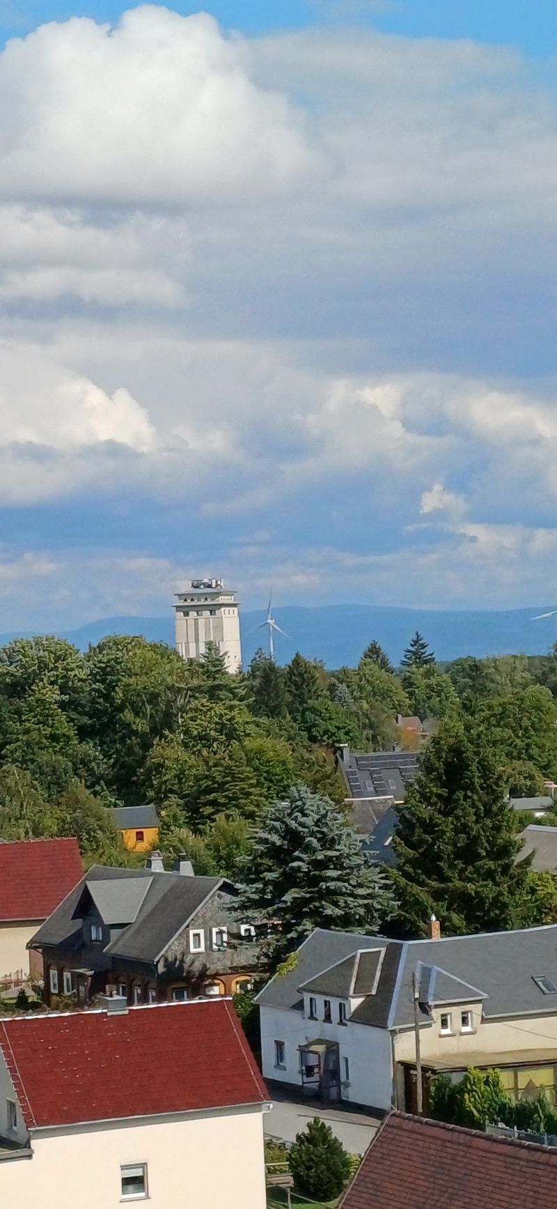 Ein Blick zum Wasserturm auf dem Hutungsberg. Der Turm wurde 1927-1929 zur Wasserversorgung der Stadt Neugersdorf errichtet.