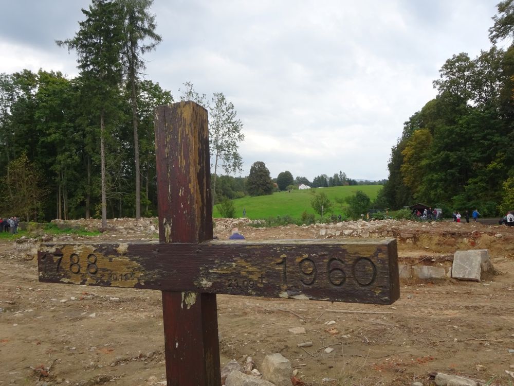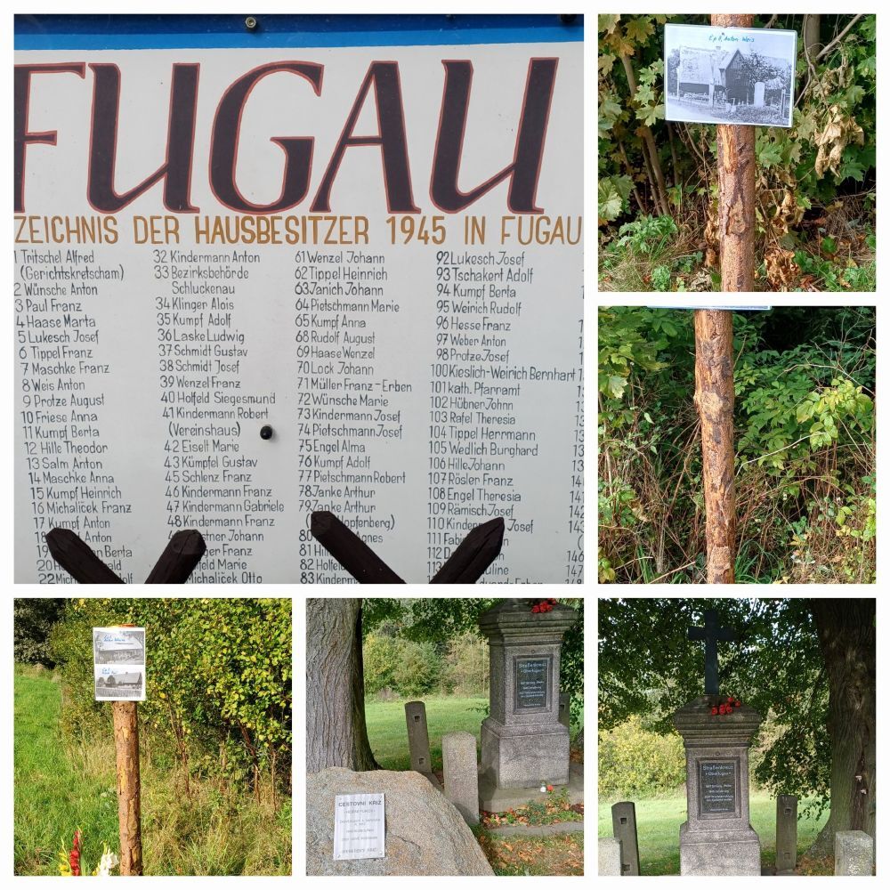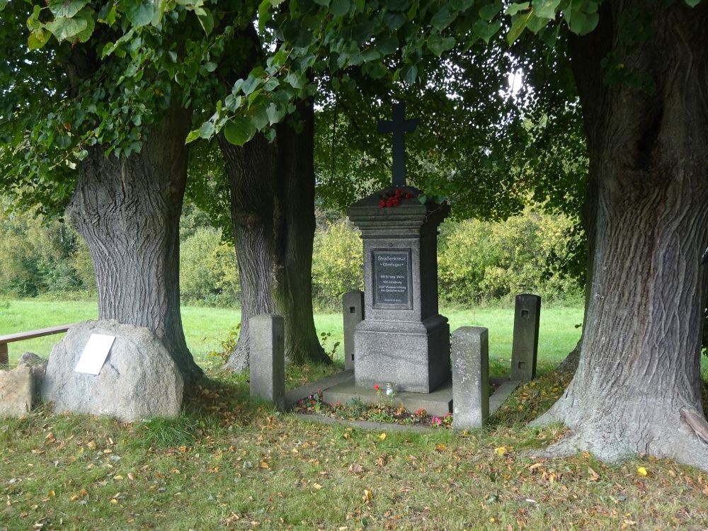 Wir wohnten im Gut oberhalb vom Reiterhaus. Mit 13 Jahren musste ich mit Schanzen. Wir schaufelten Schützengräben nördlich der Schmiedesteine. Kurz vor der Kippe. Seit Anfang Februar zogen lange Flüchtlingstrecks die F 96 westwärts. Oft schaute ich vom Hang aus, ob Verwandte von Schlesien mitkämen. Es war an einem Tag im April, als ein langer Zug KZ-Häftlinge die Schlegen von Friedersdorf herunterliefen. Einige zogen und schoben Wagen. Ich stand mit Nachbarn etwas oberhalb vor Huber Richards Haus. Nur das Schlurfen der Schuhe und das Rollen der eisenbeschlagenen Räder der Wagen waren zu hören. Da fiel rechts in der Reihe ein Häftling um. Und gleich noch ein zweiter. Wir sahen das und auch, wie ein Uniformierter den einen mit dem Stiefel anstieß und ihn in den Straßengraben rollte. Dort erschoss er ihn. Dann noch den zweiten. Ihre Häftlingsnummern P85679 und P85696. Die anderen zogen dran vorbei. Die Schüsse aus 30 Meter Entfernung jagten mir Angst ein. Heulend rannte ich nach Hause. Am 7. Mai flüchteten wir in den Wald hinter der Flachsröste. Nachmittags am 8. Mai kehrten wir zurück ins Oberdorf. Ich mit Vaters bepacktem Fahrrad. Ein Pole nahm es mir weg, packte Hab und Gut herunter und überreichte mir sein Fahrrad. Das war ein älteres, das keine Luft mehr hielt. Neugierig schaute ich beim Abbau der Panzersperre zu….
